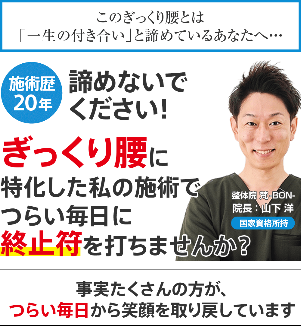 根本的にぎっくり腰を改善されたい方は是非一度、山下先生に相談してみてください!