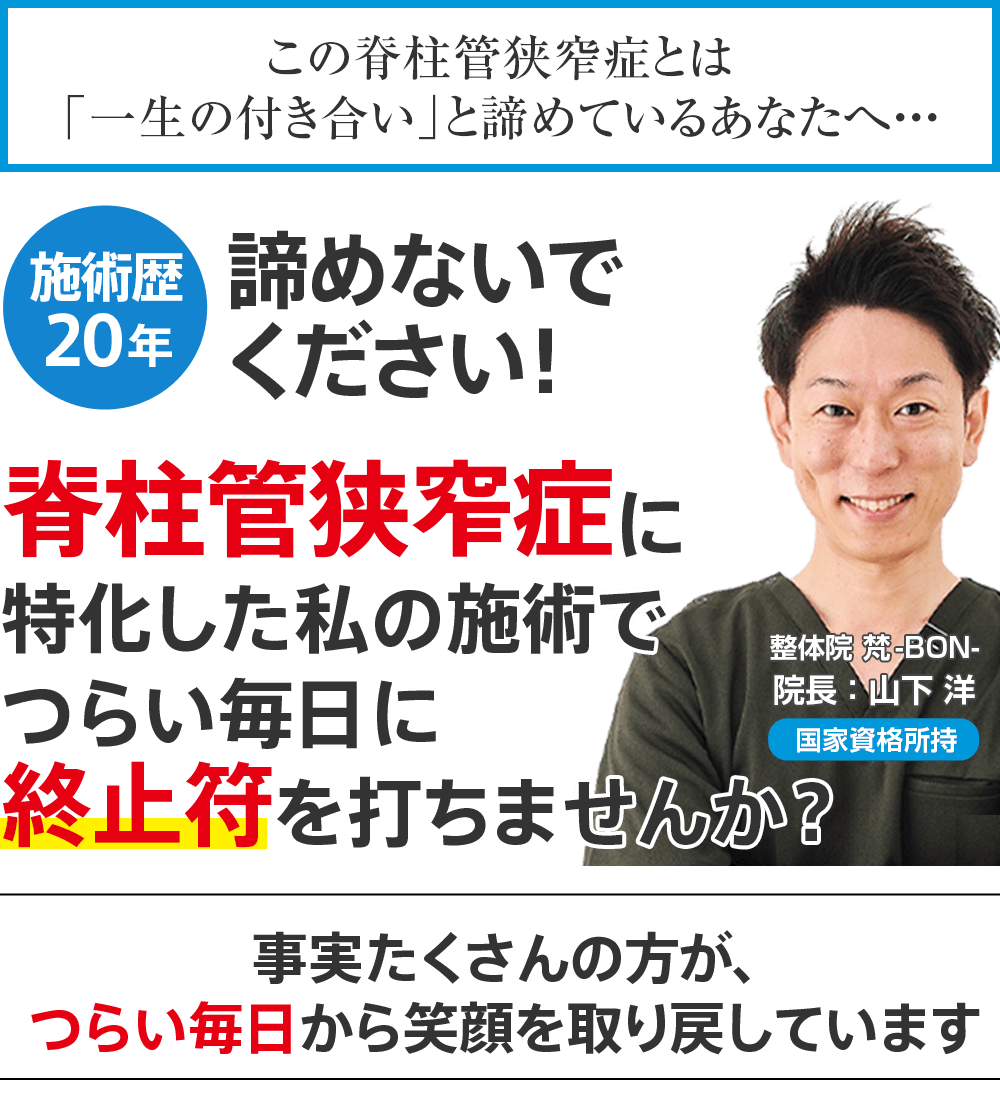 根本的に脊柱管狭窄症を改善されたい方は是非一度、山下先生に相談してみてください!
