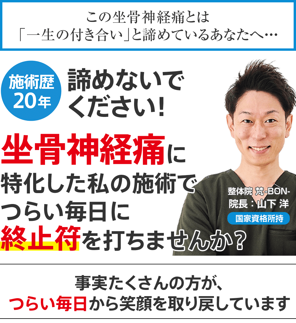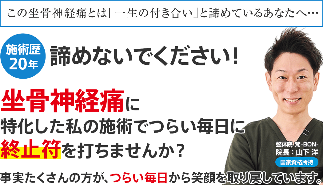 根本的に坐骨神経痛を改善されたい方は是非一度、山下先生に相談してみてください!